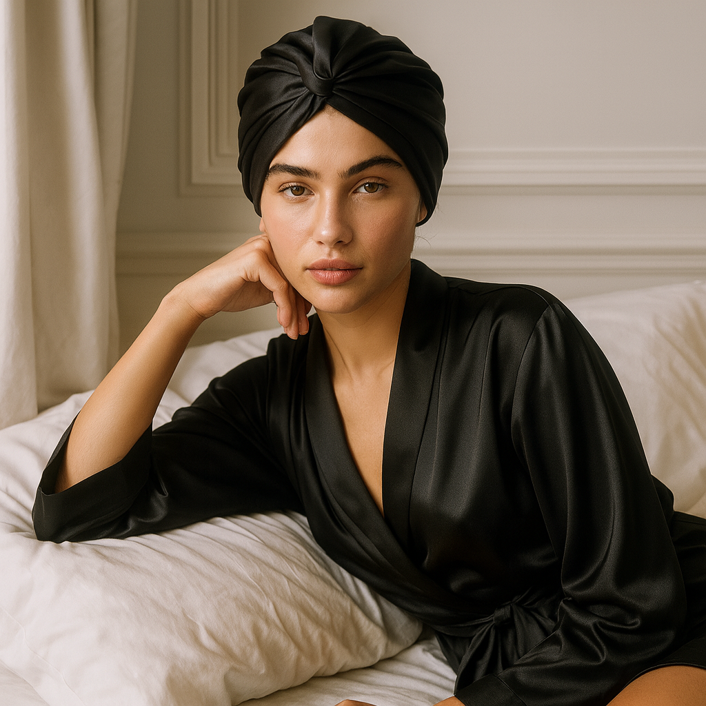 Breathable, ultra‑soft, and fully adjustable, our bonnet protects your hair overnight. By reducing friction and retaining moisture, it helps prevent frizz, breakage, and dryness—so you wake to smoother, healthier, shinier strands.