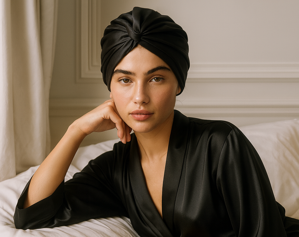 Wake to smoother, shinier, healthier hair with our premium silk bonnet. Engineered to minimize friction and seal in moisture, it combats frizz, breakage, and dryness while you sleep-keeping your hair nourished and gorgeous with no extra effort.